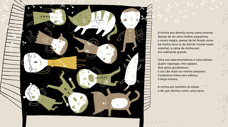 Há uma manta de retalhos, uma avó com boa memória e muitos netos de ouvido atento. À noite, ao deitar, não são precisos livros: basta à avó olhar a manta e todas as personagens e enredos que lá moram, para a sessão começar... |