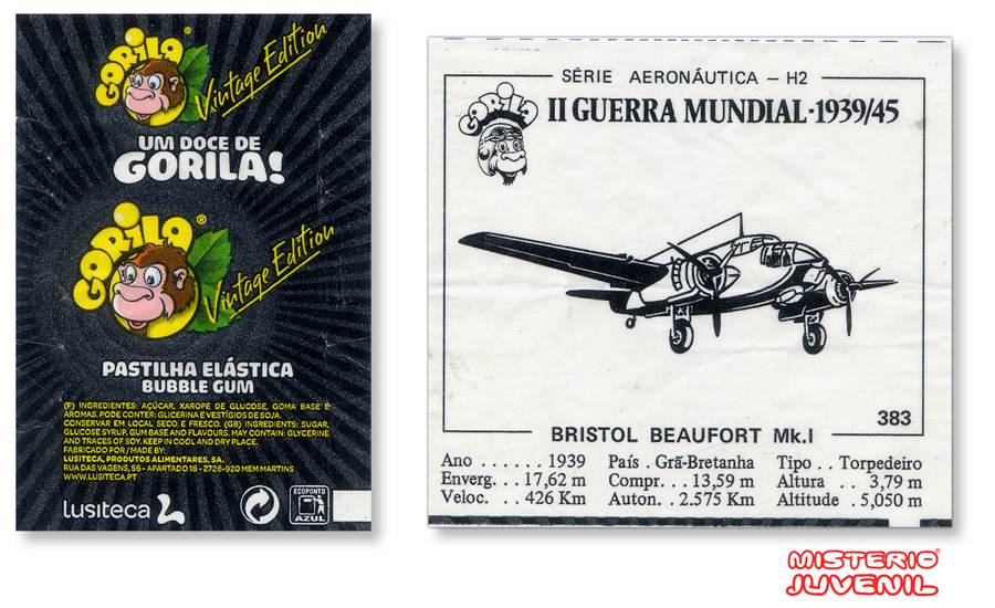 Reedição da coleção de cromos da série aerónautica oferecidos nas pastilhas elásticas Gorila. Edição Vintage. |